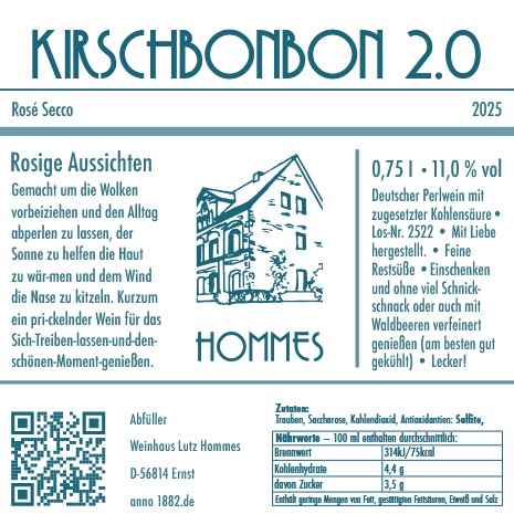 Enthält Sulfite. Teilweise aus Zukauf von befreundeten Winzern. Deutscher Perlwein mit zugesetzter Kohlensäure.